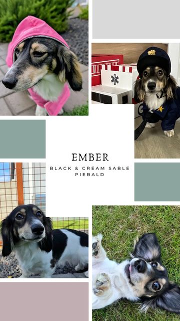 Ember is our beautiful black and cream sable dachshund, with truly special coloring made up of individual hairs that have light bases and darker tips, giving her coat stunning depth and dimension. Weighing 10 lbs, Ember is the sweetest, friendliest little girl who loves meeting new people and animals. She thrives on attention and is always ready for cuddles and kisses. Ember will be a first-time mama later this year, and we can’t wait to see her loving personality and gorgeous coloring in her pu