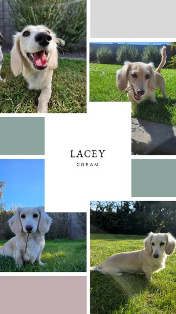 Lacey is our newest addition, a beautiful ee cream long-haired dachshund with silky, flowing cream hair. At 7 lbs and still growing, she is already stunning and full of adorable energy. Lacey loves to play and bring joy wherever she goes, and we are excited to watch her grow. She will be a first-time mama in about a year and a half, and we can’t wait to see the wonderful puppies she will bring to our program.