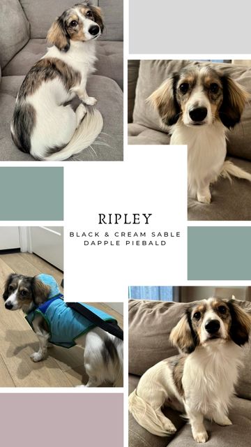 Ripley is our handsome long-haired black and cream dapple sable dachshund. His sable coloring is truly special, with individual hairs that have light bases and darker tips, giving his coat beautiful depth and dimension. Ripley is a shy, quiet, and deeply loving boy who enjoys peaceful walks, car rides, and cuddling with his family. He will be a first-time dad later this year, and we are excited to see his gentle temperament and unique coloring passed on to his puppies.